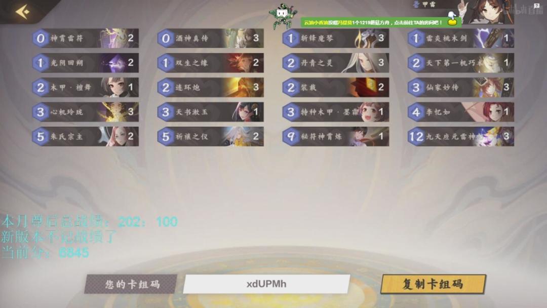 这几天会在本贴单独更新卡组,最晚本周日卡组汇总,可能会提前。