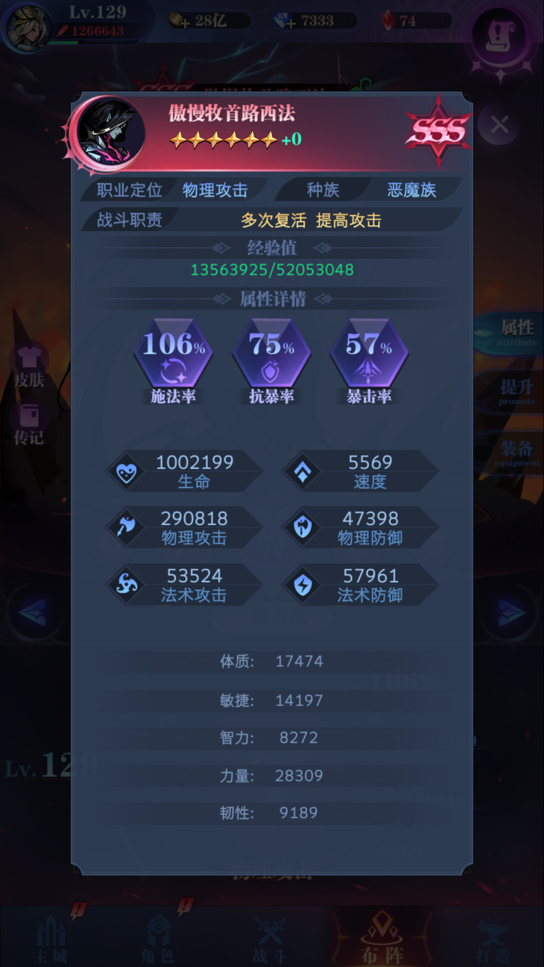 写到了这里突然想到要是你们没有守望就肝到这里那么应该可以用风语代替标记希乐2回合应该会被狮子带走,不过那应该是肉狮子吸血那种然后狮子慢慢打比较麻烦应该也能过。(路人:要是没路西法????)最后附属性站位。我路西法攻击不高要是4攻应该能更强吧大概。