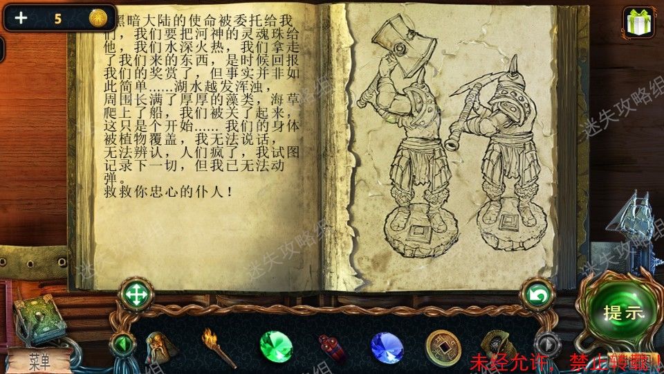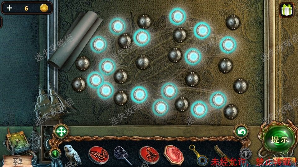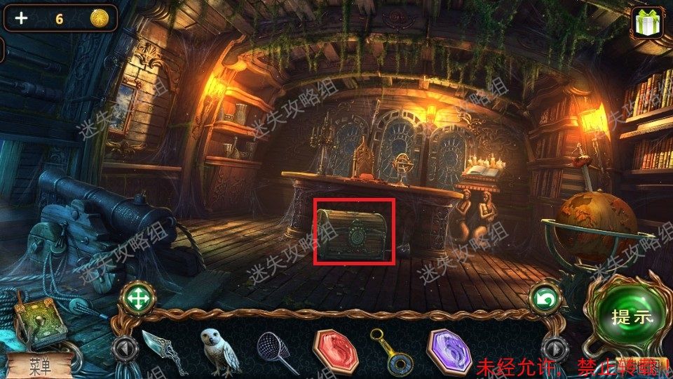 27、前往船长室,点击红圈放大,之后点击箱子上的圆盘锁放大,装入机械部件,小游戏。完成后打开箱子,点击放大后点击贝壳得到里面的珍珠。27、1