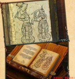 54、恶魔雕像处,右边台阶上的红圈点击放大后,对其使用匕首,得到包里的蓝宝石(2)并阅读日记。左侧黄圈处点击放大后使用铁铲,获得红色布上面的符号(一看就是密码啊混蛋)同时得到齿轮。左侧墙上的绿圈处点击放大,点击鸦觜锄的断手柄将其拆掉,然后对锄头使用木棒,装好后疯狂点击,得到锄头。54