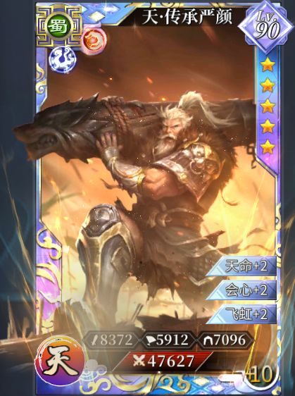 封侯传承严颜是蜀枪弓的输出其主公技能可进行范围眩晕并起到分割战场的作用,配合刘禅能起到可观的控场效果,但调遣将军的效果是一把双刃剑,需要配合双方站位考虑释放。主动技能对最近和最远的敌人造成大量伤害,配合主公技拉开两目标的距离,能够造成极大的二次伤害。同时主动技还会对目标施加减治疗和降低物防的效果,便于此后斩杀未能击杀的敌人。