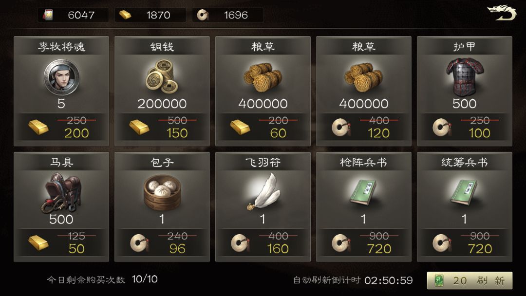 当然,玉璧不能用于英雄进阶,在目前的版本中,主公们可以在市集—随机商店中使用玉璧购买特技兵书、体力道具、军械和资源等等。机不可失,失不再来,主公们一定不能错过这些抄底价噢!