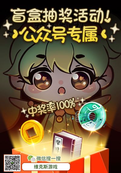 为了保证盲盒抽奖的随机性,我们不会公布精确时间(一般在下午和晚上),大家只要看到【维克斯游戏】公众号相关推送,通过指引进入小程序抽奖即可。而抽奖的前提,是必须关注【维克斯游戏】公众号哦!