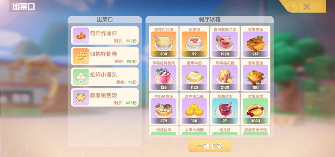 不过菜品的消耗时间倒是可以测了,这周有个ddl所以我暂时先不测了,如果理解了实验思路可以自行测试。