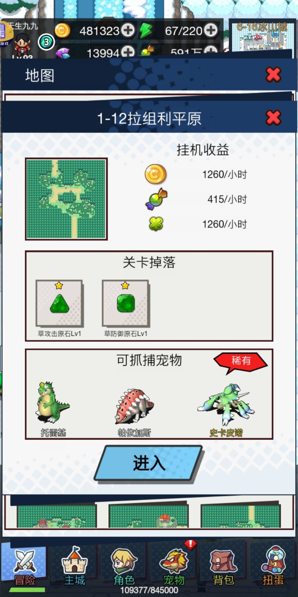 新人一定要记得刷新宠物的时候要点捕捉或者放弃,这样才会快点刷下一只,遇到了建议用70%的超级捕捉卡。更新还出了个突破升星功能,突破了才能升到更高级,史卡皮诺有稳定的升星突破来源,且运气好150钻石就可以弄到手,对于白嫖微氪党都很友好。