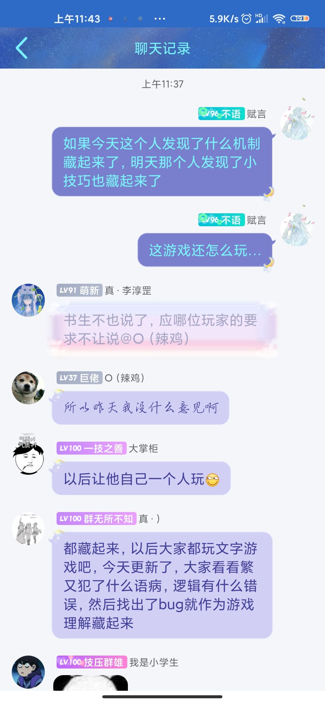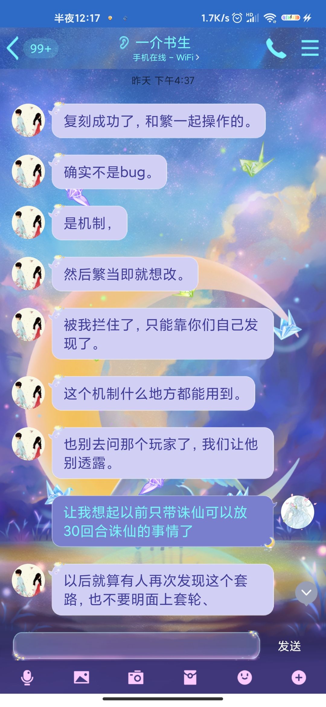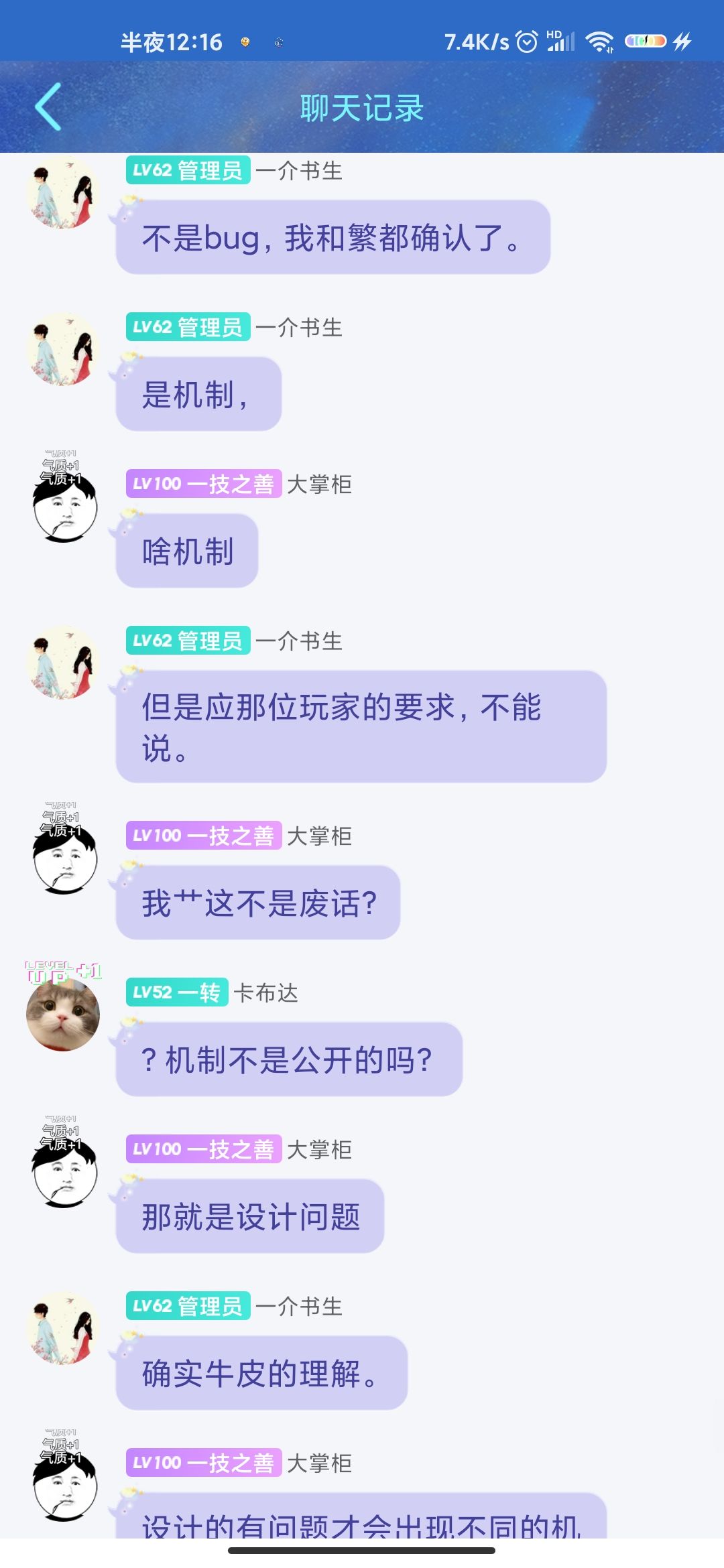 然后大家讨论无果,繁和书生也没理清思路,便直接去问余梦婉,得知结果,并声明:该机制并不属于bug,且不会公开。