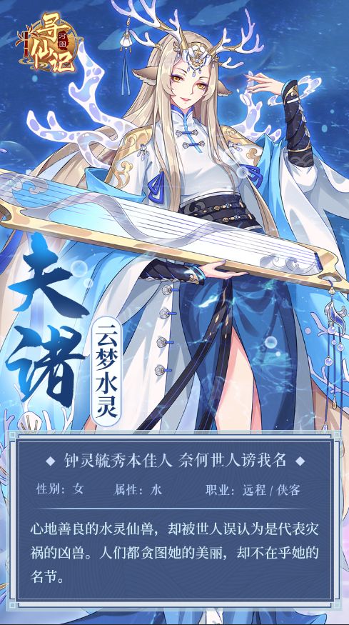 夫诸是五湖四海共同孕育的水灵仙兽,形似白鹿,头生四角,具有极强的控水能力。