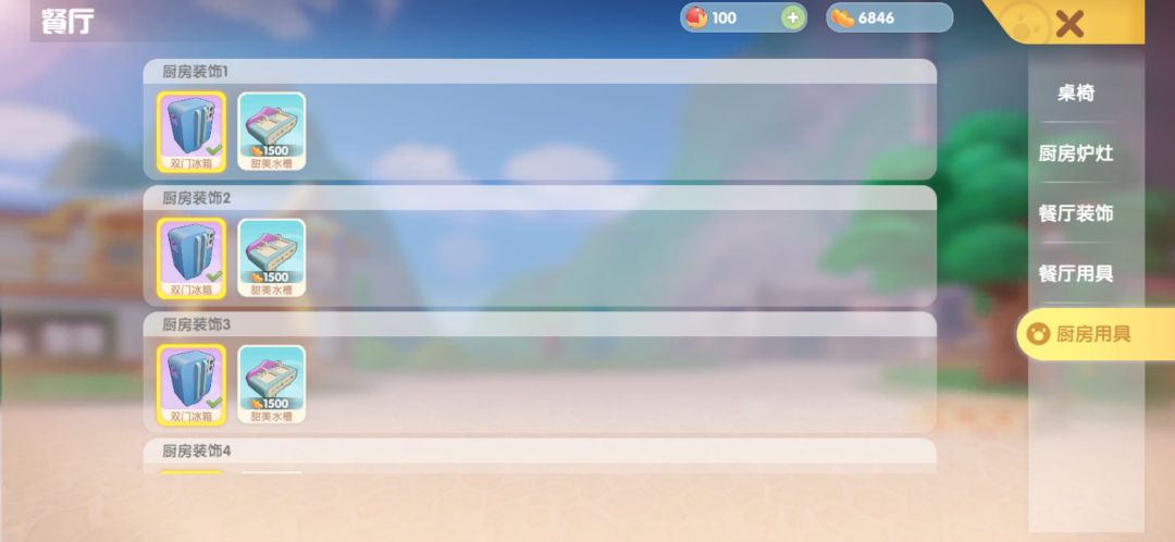 而且餐桌的加成是稀有度越高加成越多!所以买餐厅装饰不是多多益善,举个简单的列子,厨房用具中的装饰冰箱豪华值加成是200,水槽加成是150,而水槽是后解锁的,所以大家千万别急着购买,先看看是否稀有度更高!