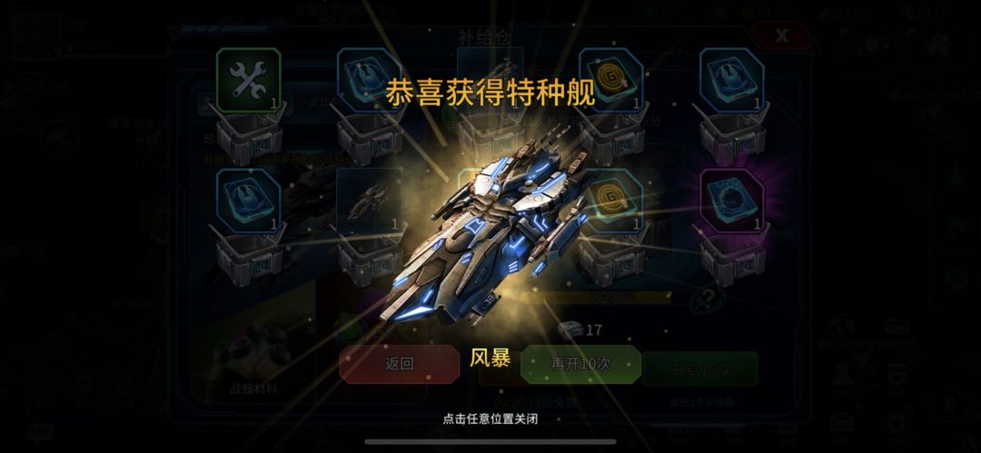我这次开箱就开了27个,第一把10个箱子开就得到一艘航母海蛇+特种风暴。后面还得到了两个特种的特武组建!可以说是运气爆棚了。