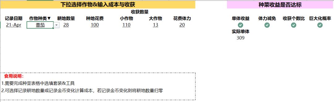 4.种菜收益记录:可以快速看出单体与减免是否达标。