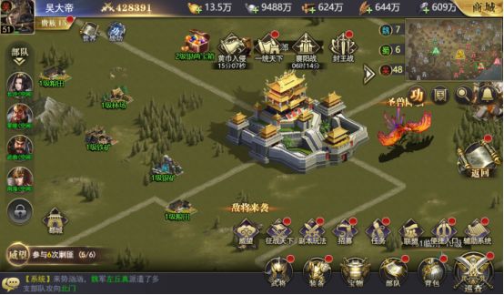 3. 攻城战要注意部队的搭配,因为城池的守军数量是很多的,所以一定要带上能加血能回血的武将去耗,比如七日庆典送的黄月英。当然,不停战斗是会积累傲气的,傲气越高战斗力下降越厉害(最多下降50%),所以能坚持多久就很考验各位主公了(貌似有大佬即便这样都能抗住)。