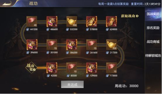2. 每周还有战功相关的国战宝箱,产出很多的元宝、红将碎片和军旗,所以想要富,一定要来打攻城战。