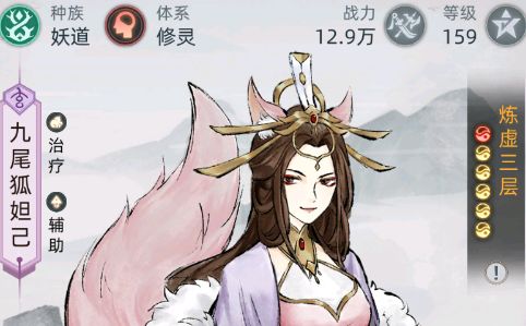 妲己是本阵容唯一的资料没有什么输出能力,角色的主要功法和法宝都是增加治疗效果能力的,后期打算是把妲己换掉,具体换那个英雄还没想好。。
