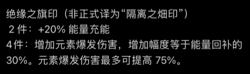 绝缘的旗印2件套效果:+ 20%元素充能效率