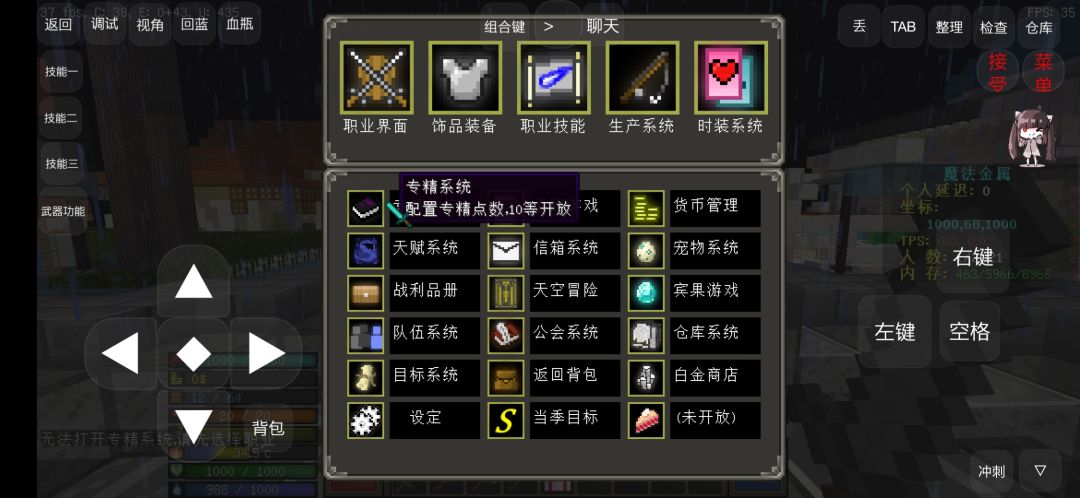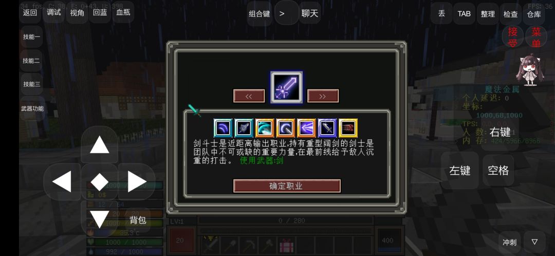 >模组内有八大职业可选,每个职业都有属于自己的技能