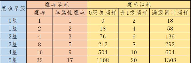 2.魔魂升到5星需要消耗32张魔魂卡,如果只想保留单个魔魂技能,最少需要同样的魔魂卡17张。