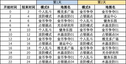 1.赛场轮转更新,同时提供2个可供选择模式,调整为每2h刷新一次: