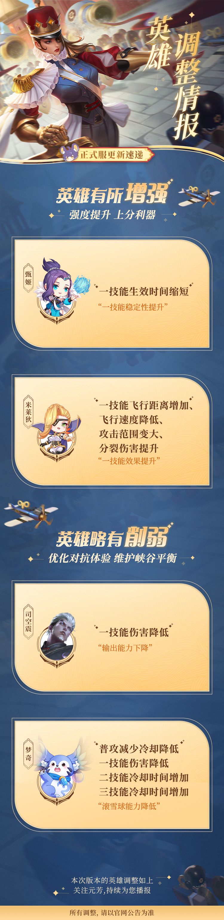 英雄调整情报丨甄姬、米莱狄增强 梦奇降温