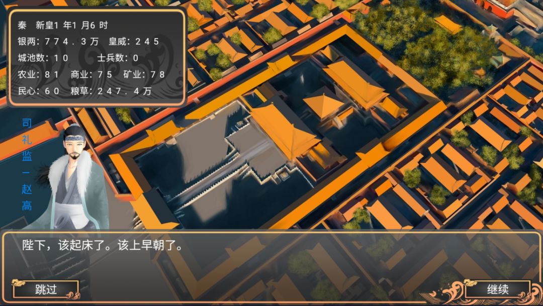 进入游戏的第一件事情,就是你的司礼监大总管---赵高喊你起床~