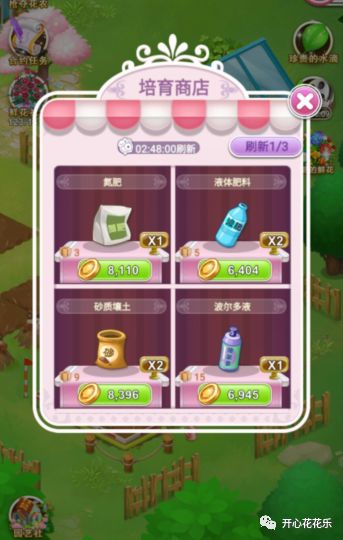 在道具商城里面,玩家们可以购买各种道具,例如培育鲜花种子的土壤、肥料、杀虫剂等,也可以购买水滴、加速器、抢夺令等。那以上便是今天为大家分享的所有内容啦,希望能够帮助到各位萌新哦!