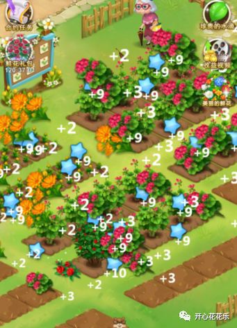 玩家们需要在田地里上播种鲜花种子,并且浇水才能长成鲜花,鲜花长大以后,采摘鲜花,可以获得鲜花、金币和经验,也有一定几率可以获得鲜花种子,这些鲜花种子可以用来培育鲜花,提升鲜花的等级,不同等级的鲜花带来的收益是不一样的,初始等级的鲜花只能收获一次,提升到2级以上就可以收获两次鲜花,鲜花收获时间的间隔也会减少,收获数量也会提升。
