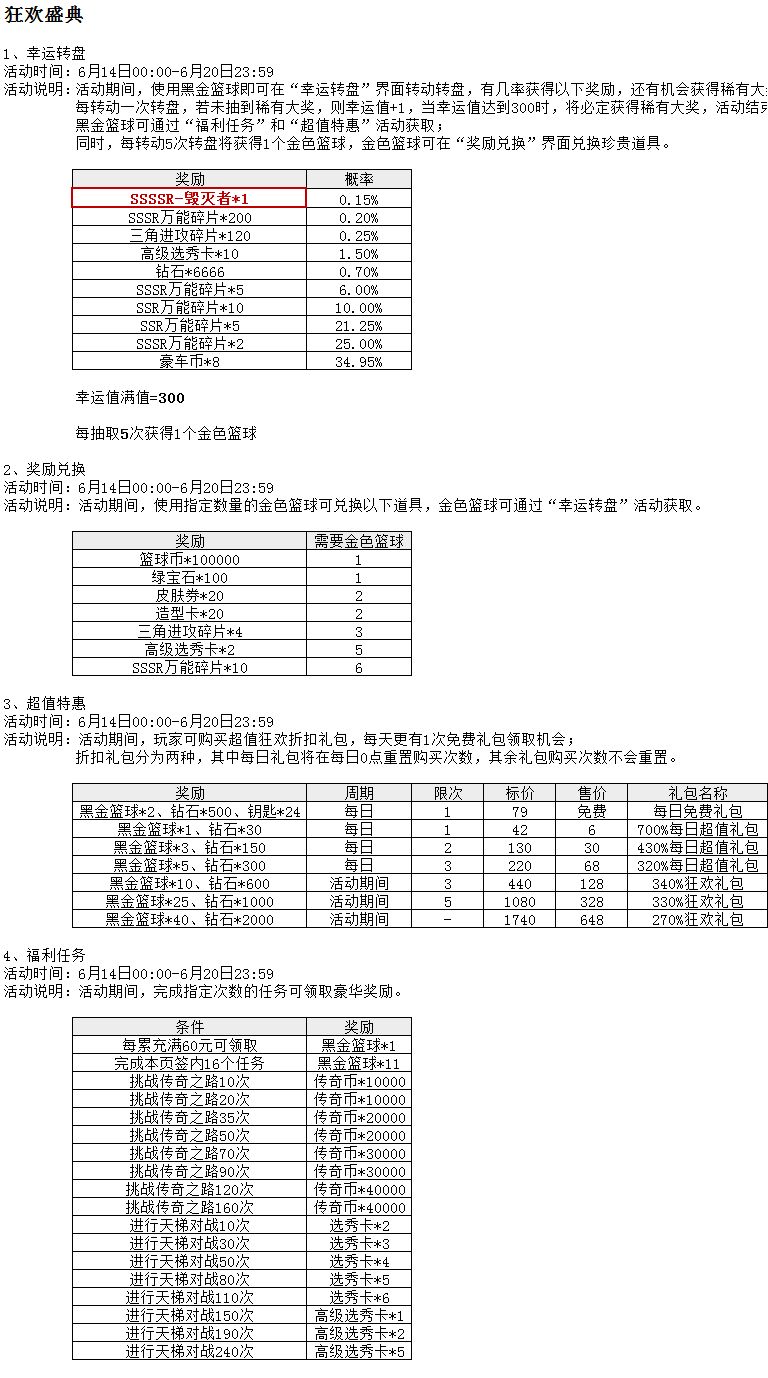 内容:高级选秀卡*1、投篮券*5、皮肤券*20