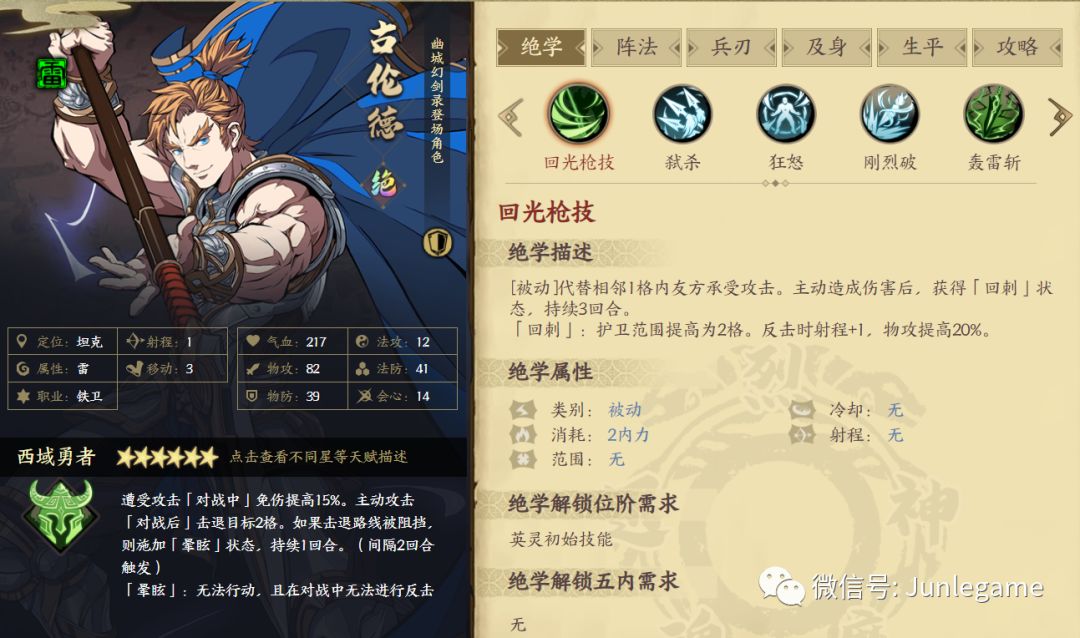 古伦德也算是经历过大起大落的男人,PVE从公测初期的拒绝使用:“古大哥,你不要过来啊”~到第七章开始“老古的晕真好用,你有古伦德轻松过”,“60/62雷创上古伦德啊,钢的很”,风评由弱上升为最优质坦克。PVP反而不用多费口舌,反击2格自带控制的坦克,带上【寒月玉镯】饰品防断腿,在联机巅峰赛气血大幅提升防秒坦克的情况下,也只有刺客无视护卫和aoe能越过古伦德让你减员了。建议抽个留种,PVE4星就能使用,PVP请到6星。