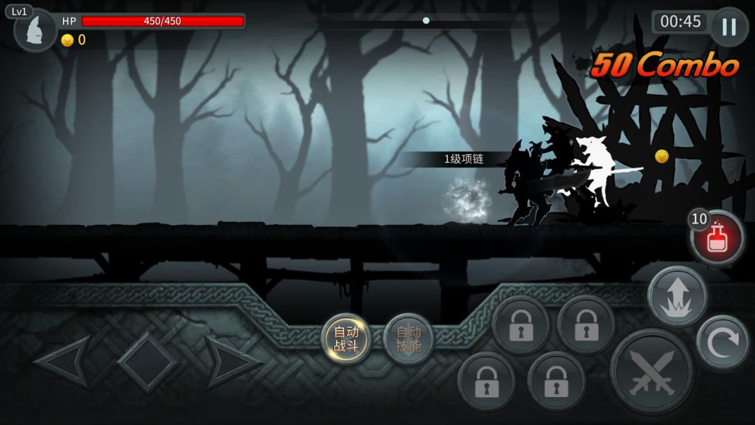 随着关卡的逐渐深入,敌人也会越来越强大,主角本身升级所带来的收益已经远远不能支撑过关的需要,而《黑暗之剑》给玩家提供了一个庞大的装备系统。虽然主角的形象仅仅是剪影,可是在真正的关卡战斗中,所有装备的更替还是有所展示的,不同的武器或者装备都有着不同的造型。就算你觉得自己足够强力,可以用精妙的操作解决一切关卡,可是如果能给主角换上不同的装备,看着他从朴素穿着到华丽战甲的变化,这不也是一种成就感么?