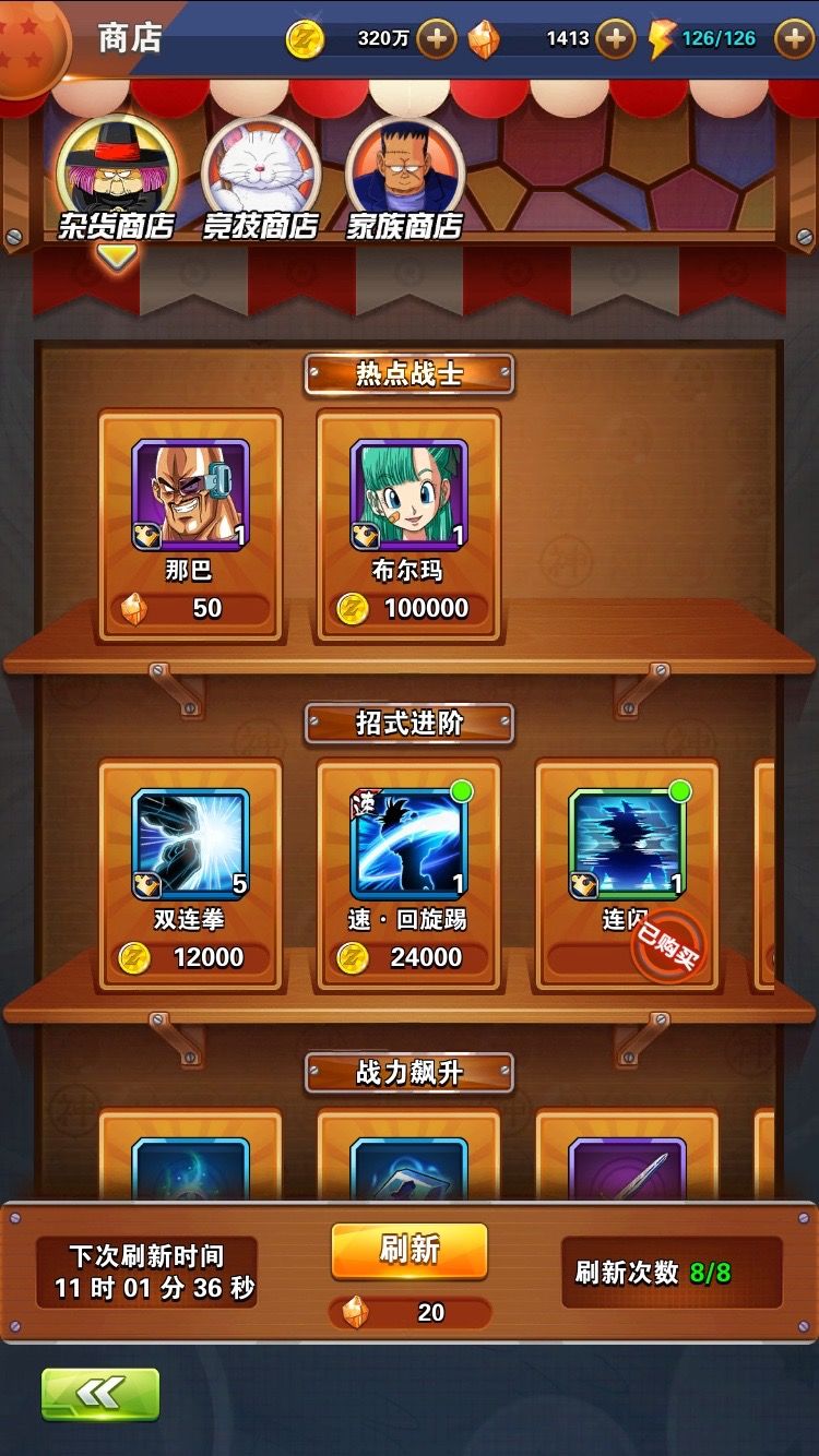 氪金抽卡游戏常见的消费点是金币抽和钻石抽,一般金币抽的设定是五次免费,每次免费抽取之间有10分钟的冷却时间。手机app游戏做10分钟的设定,而一些H5游戏因为用户黏性不算太高,所以会做5分钟一次的设定。不过《龙珠激斗》似乎没有在意那么多的身份,同样做出了5分钟抽一次的爽快设定。