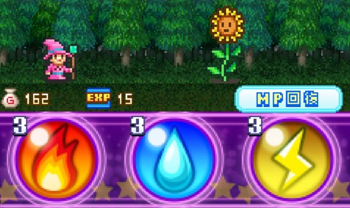 其次是游戏难度,也不能说国内玩家都被惯坏了,喜欢那种上来就各种碾压各种爽的游戏。可是你《まほうつかいクエスト》也别给做成被怪碾压的局面吧?虽然游戏操作很简单,主角在地图上一路走过去,碰到不同的怪物用克制它的属性魔法攻击它就行了,可是如果大家都享受到最初手忙脚乱想不起来用什么魔法的时候直接被怪物撸死猫车的心情的话,谁愿意撑过新手阶段?