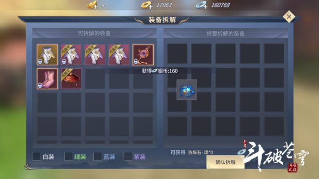 紫色以及橙色装备不建议斗者进行分解,可以通过锻造为自己的装备增加属性,只需要分解白色、绿色和蓝色的装备即可。
