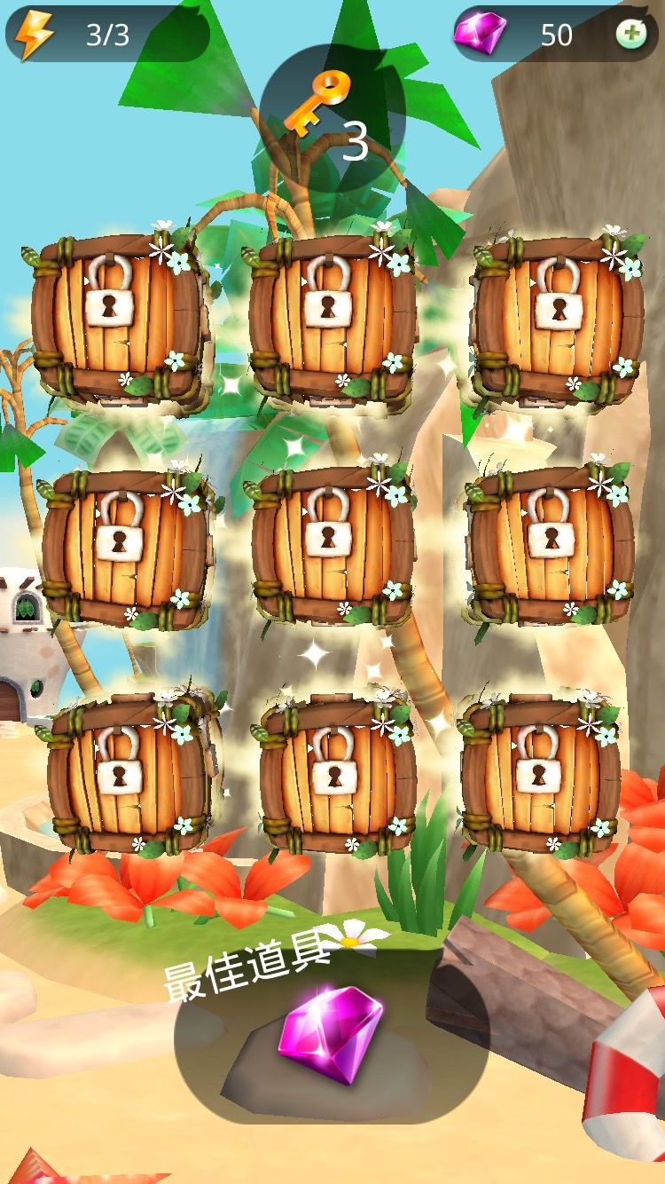 每一个关卡都由三个小关卡组成,而每个关卡获得的分数总和就是玩家在这一关中获得的分数,不同的分数会对应不同的星级评价,不要小看这个评价哦,原来只是为了刷三星强迫症玩家存在的星级评价系统,现在可以实实在在地为玩家带来好处,每颗星可以换一把钥匙,利用钥匙可以开箱子,金币、道具和宝石之类的奖励都有可能开到哦!