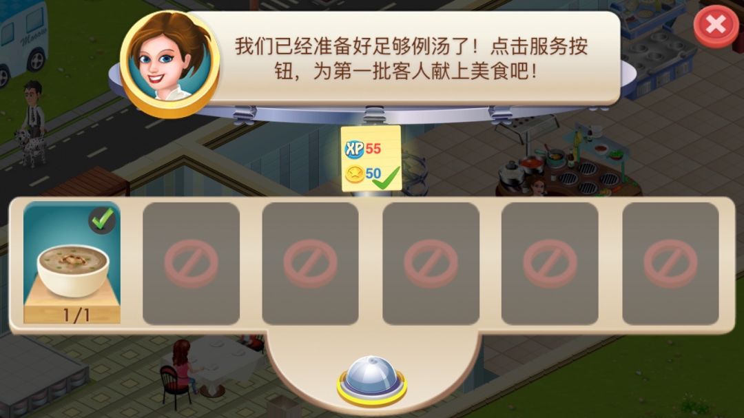 当然,随着游戏的不断进行,玩家会招待越来越多的客人,每一桌客人都能给餐厅带来丰厚的经验和金钱,当经验不断提升级别不断上升的时候,除了餐厅本身大小可以随之扩大之外,双人桌可以扩建为四人桌、后厨中越来越多的烹饪模式也会被解锁。别以为奶油蘑菇浓汤能解决所有客人的需求,当玩家等级上去的时候,客人们会提出各种各样的需求,如果没有相应扩建的话,很可能玩家根本都无法满足客人所点的菜单哦。
