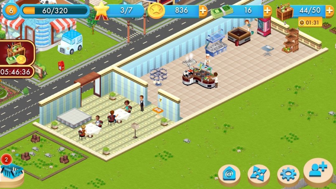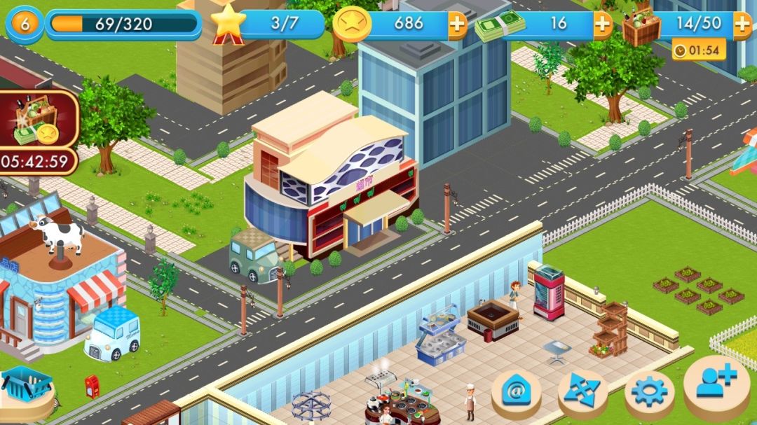 名字叫《明星大厨》,游戏自然要开一家像模像样的餐厅,因为游戏中的菜单走的是奶油蘑菇浓汤、番茄浓汤这种路线,所以整个游戏的风格也采用了卡通风。刚进入游戏时俯瞰全局,你能看到一个热闹的欧式小镇,在道路上那些来来往往的行人以后很有可能就是你的客人,招待好他们就是你未来游戏中主要的内容。