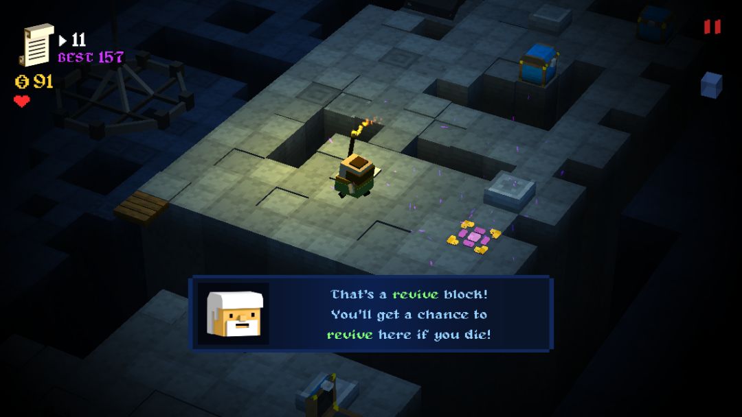 但是《任务守卫者》和其他过马路游戏最大的不同就是——我们的主角只要一开始走,就不会停下来,除非撞到障碍物,或者……狗带。