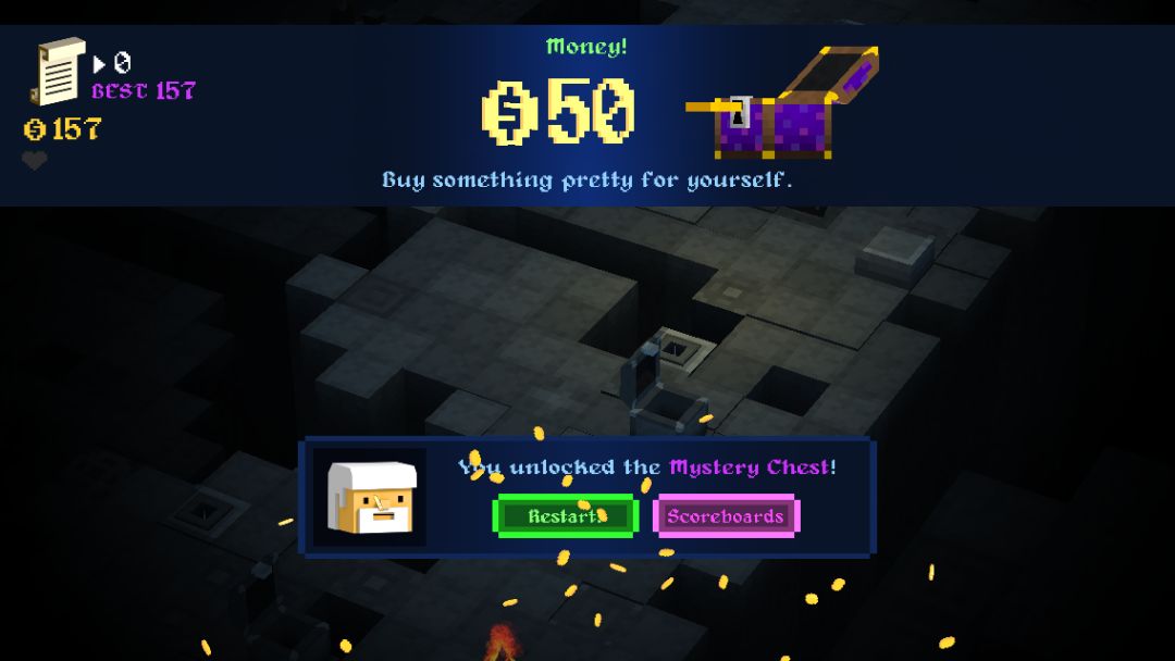 所以在半路遇到宝箱不需要费神一个个点开,直接往上面大胆的撞吧,然后你就会愉悦的看到金币在头顶炸开一朵花。