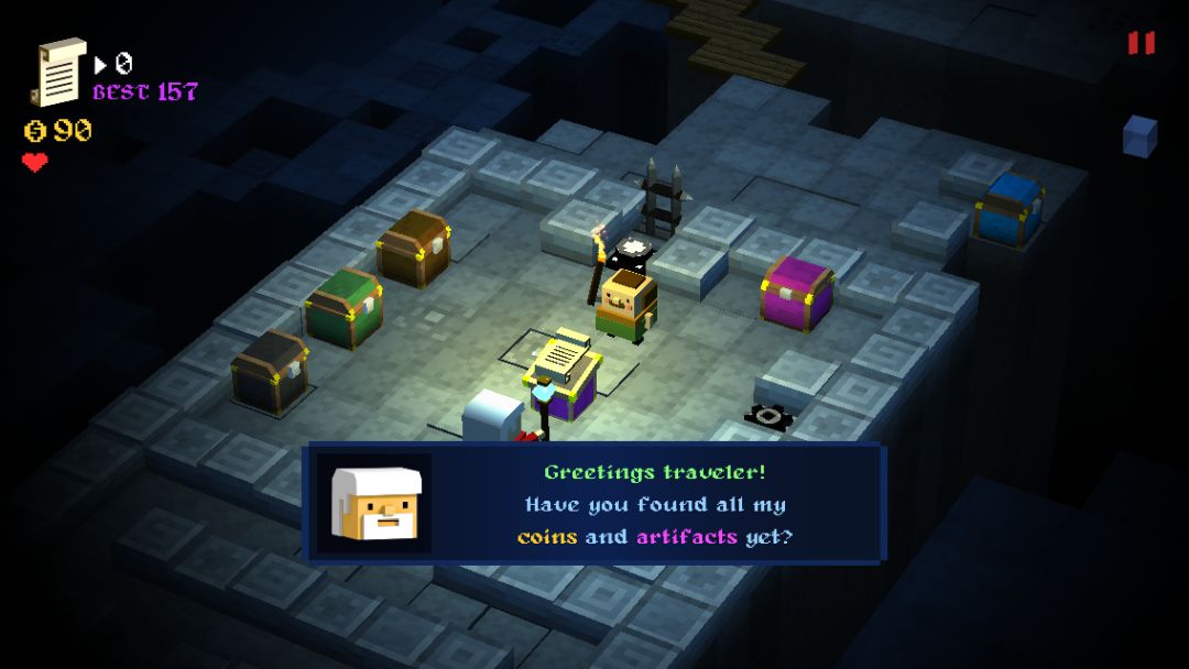 除了有箱子之外,起点处还有一个手持魔杖的老爷爷,他会告诉你游戏的操作以及道具的使用,为了存在感偶尔也会卖个萌。