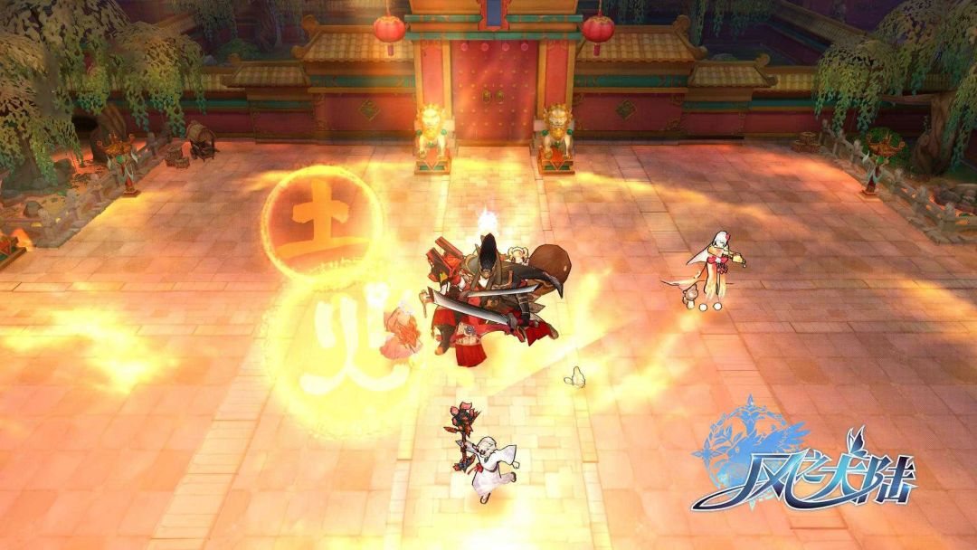 “五行爆裂,可破万物!”当御前侍卫说出这句话时,场地被他召唤出金木水火土五行球,并按照顺序逐一爆裂,对全场玩家造成全屏AOE伤害。