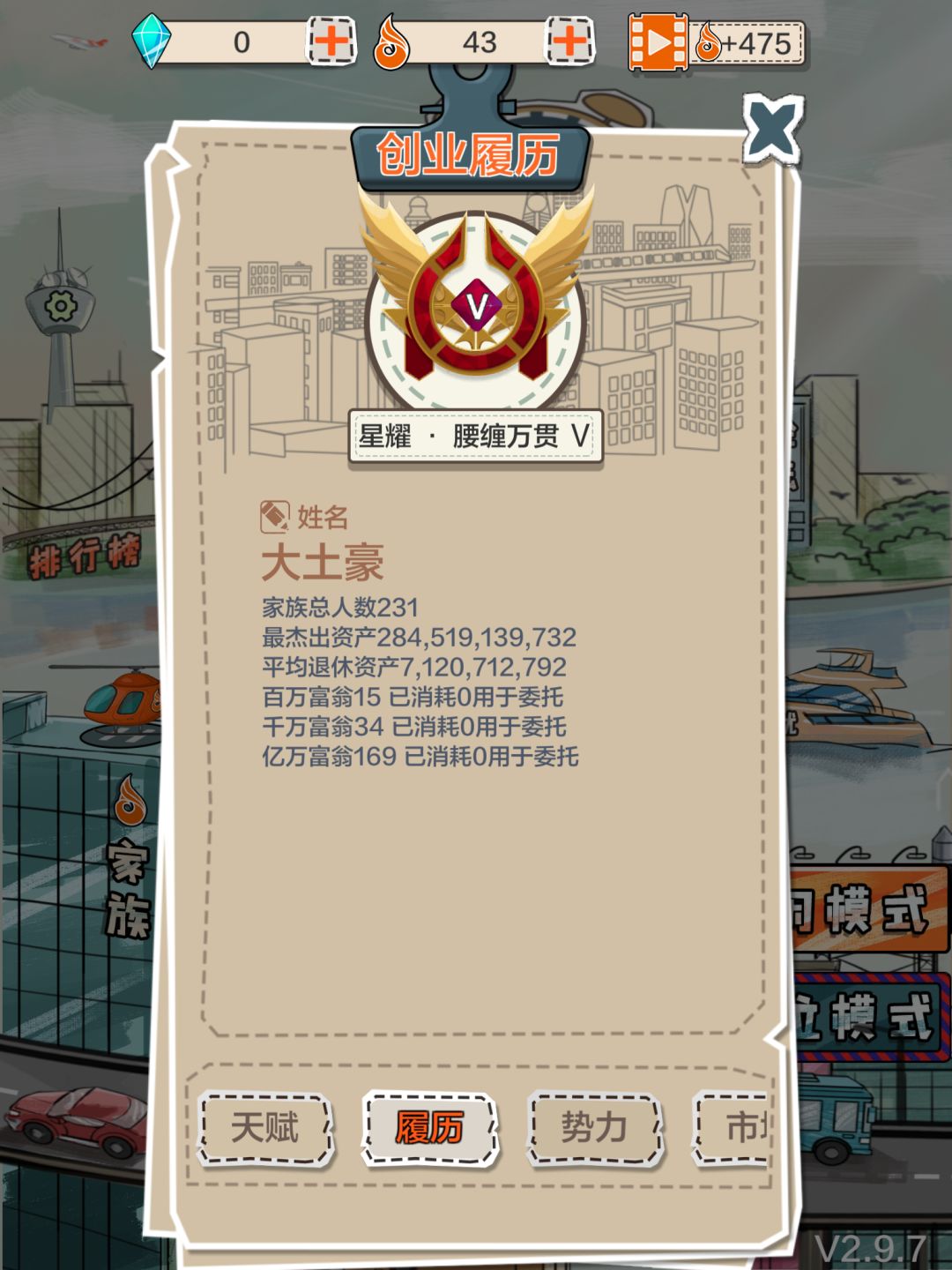 高阶来了 这时天赋也差不多了,按照上面的玩法三十岁之前买进制药厂,之后还要来回倒卖,天赋要是有开两家公司最好,制药厂,房地产都买,每一年股票上涨卖掉,不要全卖,留一点,在买进,资产会增加,股票涨的时候那年这样操作就可以了,重点来了,在股票这样操作下反反复复大约60 70左右就有20亿了