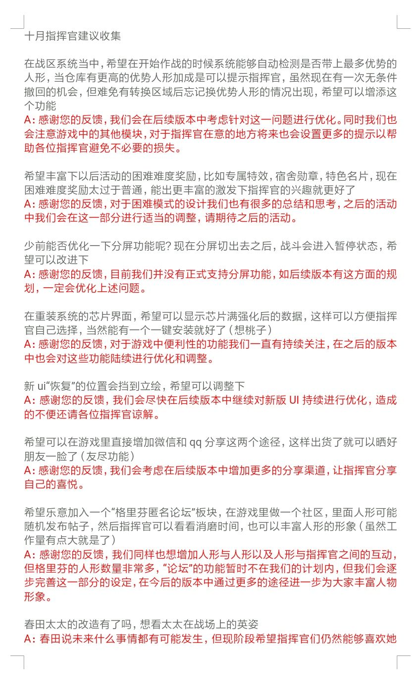 这里是十月的指挥官建议反馈哦