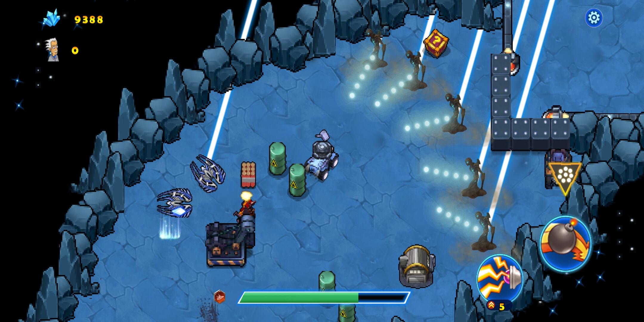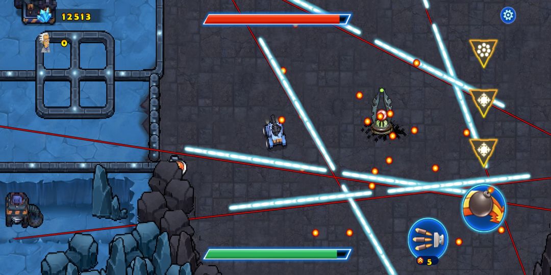 第二关很简单,区别第一关是有移动炮台和无敌的移动激光,激光可以被物体挡住,清兵然后躲激光就可以了,如果升级护盾也可以冲激光过。