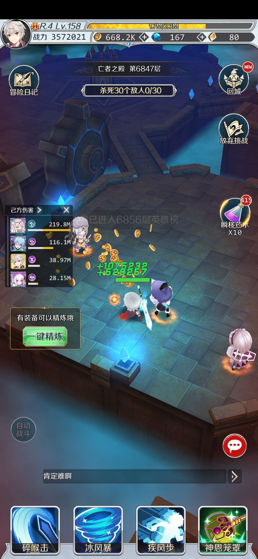 这是莉莉穿透后我在6857打物防怪的图,可以看见莉莉伤害大概是弟弟的一半,补伤害是够了,也许你们会说三冰没必要,牺牲太多,如果猪脚穿透够,战力够确实没必要三冰,二冰是猪脚就可以解决战斗了,这只是提供个思路,也许后面猪脚穿透一直不够呢。