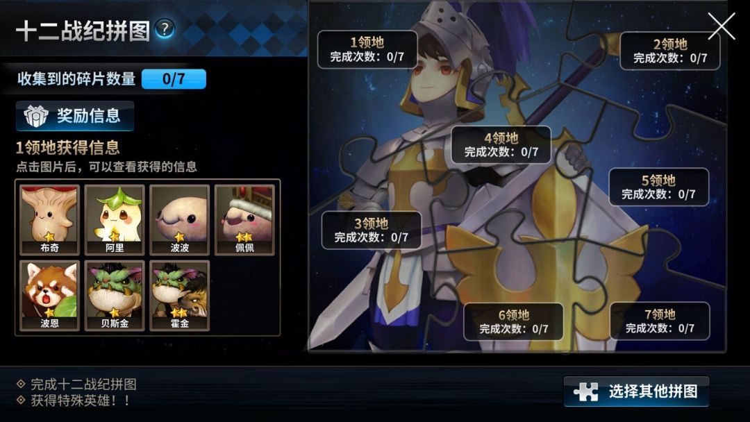 增加十二战纪拼图系统,骑士们完成对应的任务就可以获得自己选择的七骑士,