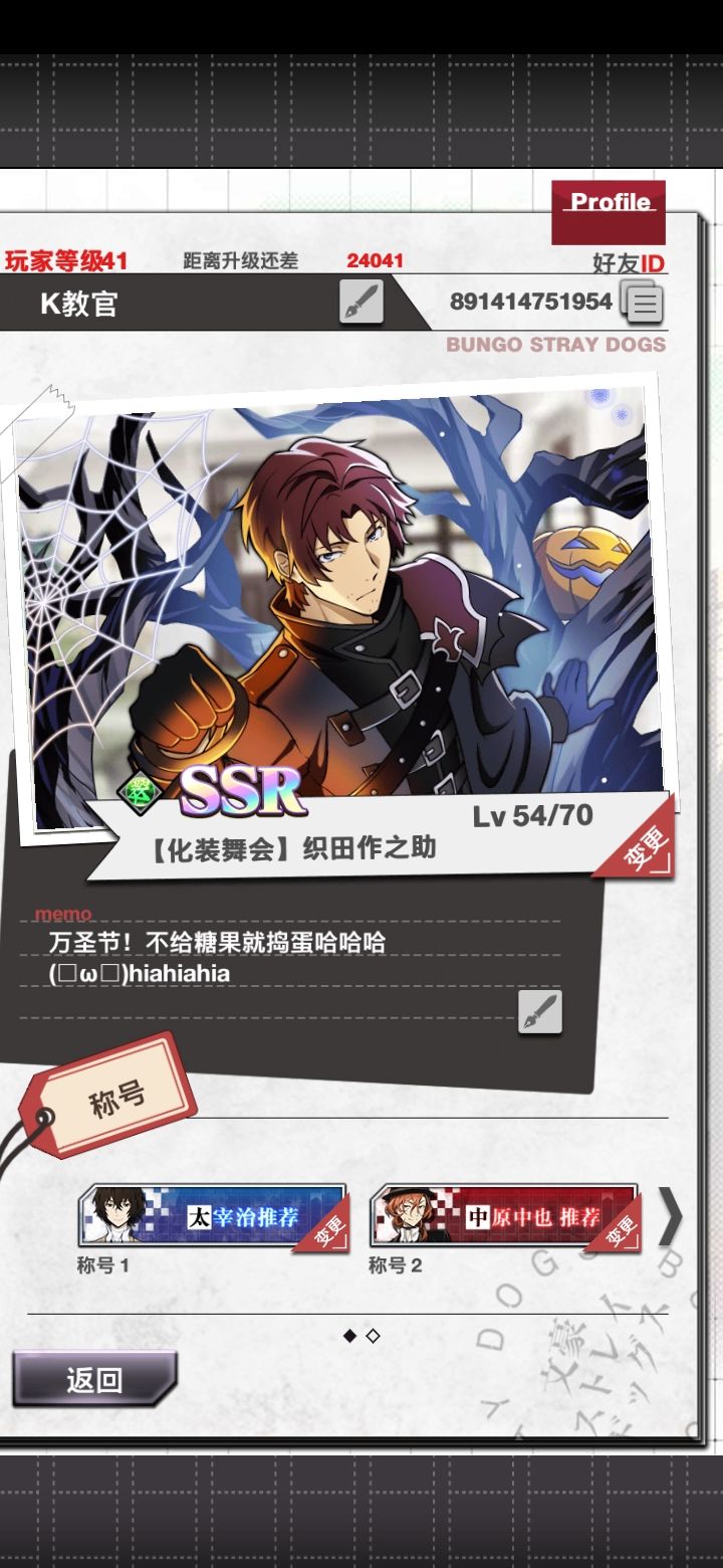 八次十连只有一个织田作qwq,想要称号。。唉随缘,欢迎打活动的朋友加好友一起玩【会在主页放活动角色的】肝帝友好(✪▽✪)