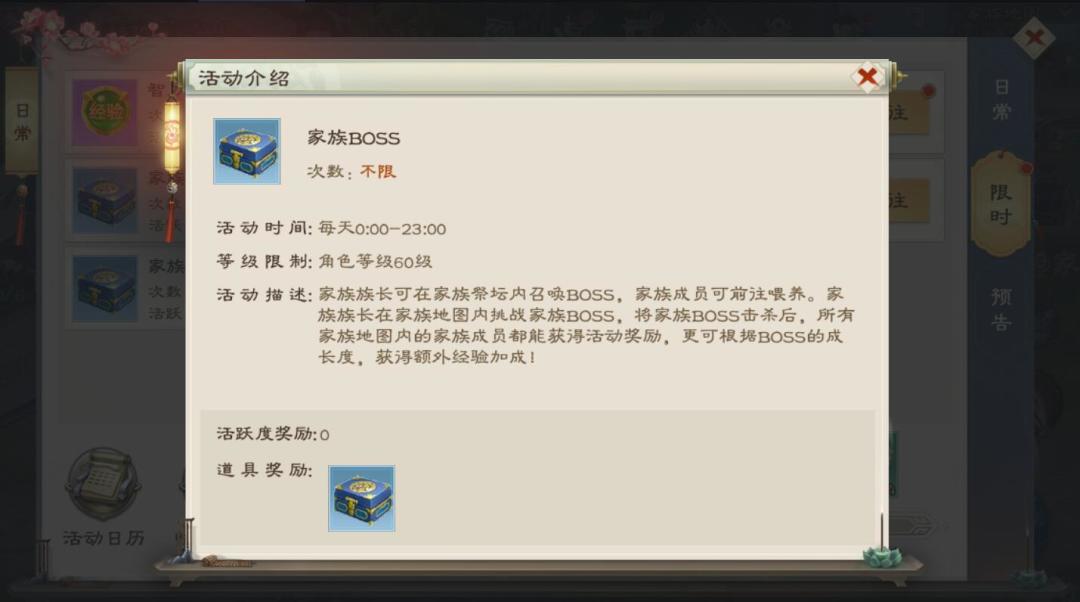 二、家族BOSS活动要求