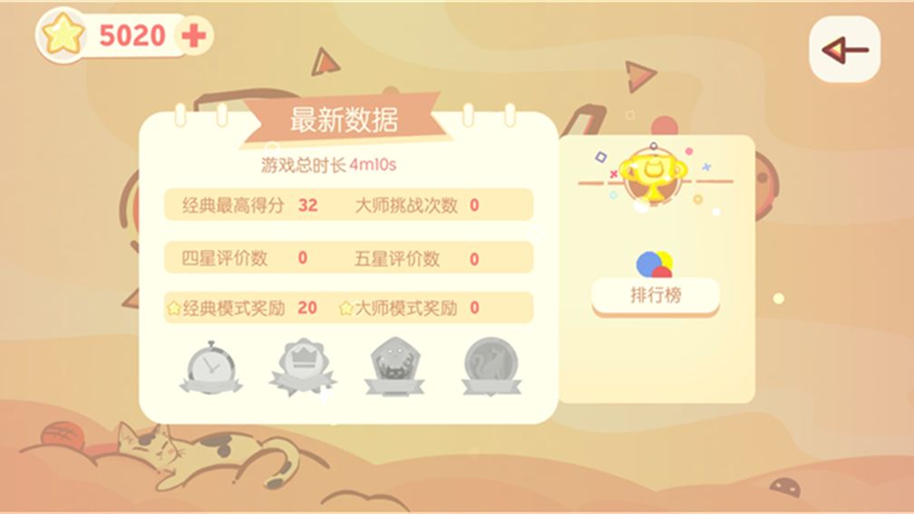 游戏的普通模式会记录你游戏的点点滴滴,具有完善的数据系统。除普通模式之外,游戏还有花样更多、难度更高的大师模式,可玩性还是挺高的,游戏的操作方式也可谓是前所未有的创新。另外游戏是全免费模式,免费下载,也没有任何的道具收费,解锁游戏中的皮肤、猫咪等道具都靠在游戏闯关中收集到的星星,非常适合喜欢有操作有挑战的平民玩家以及休闲玩家入坑~