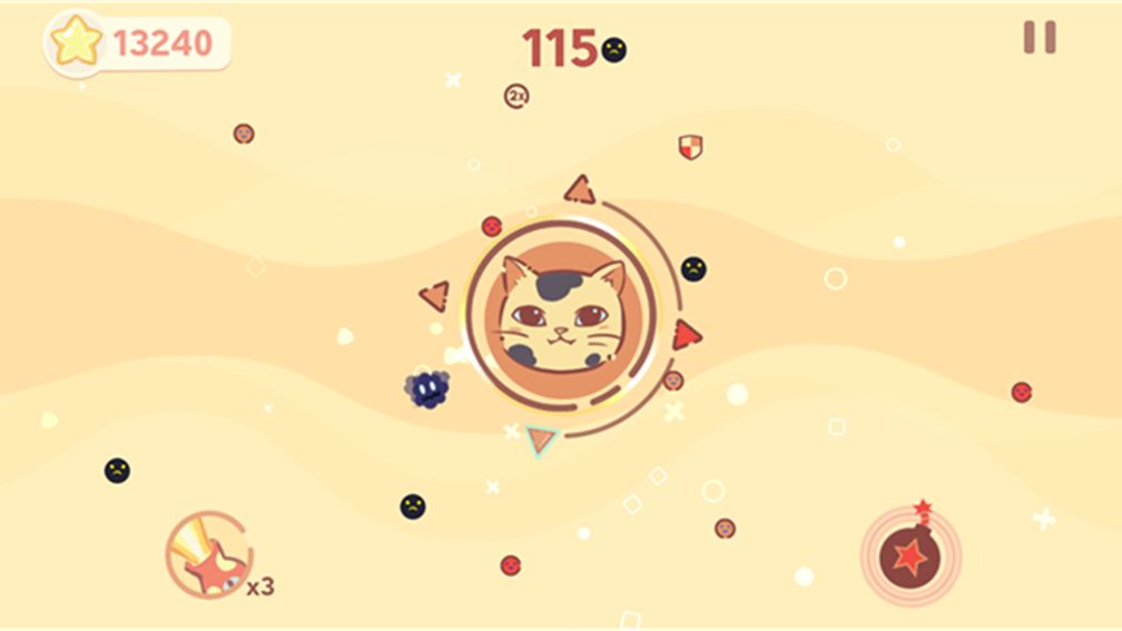 来自地球你的,需要操控喵星球四周的保护罩,帮助猫咪抵御外敌,黑暗军团碰到保护罩会被消灭,同时也会消耗保护罩的耐久度,但是保护罩也会有缺口,一旦黑暗军团从缺口进入喵星,。当然你也会有帮手,神秘的外星来客会加强喵星球的防御,但外星来客混在了黑暗军团中,更开眼你的眼力。
