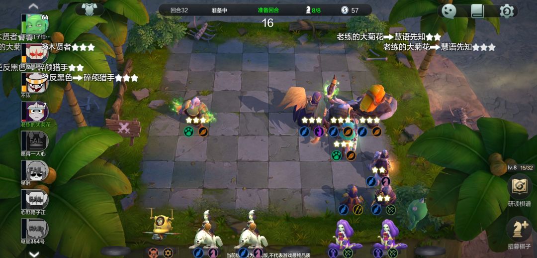 露娜和敌法这时候该三星了,留意美杜莎,拿到两星,四个德鲁伊都要三星,其余两星。场上六个三星,是最强时期。