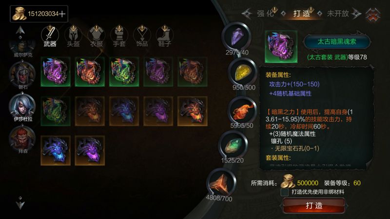 锻造范围:高级远古套装、高级远古传奇、太古套装、太古传奇