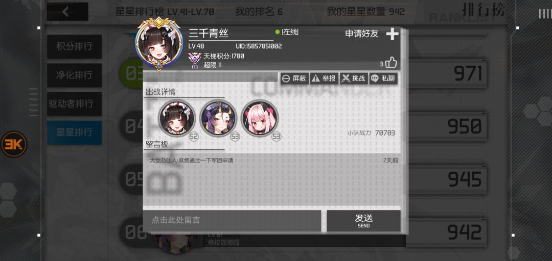 客服出来一下瞅瞅,这人,48级才7万战,就能全三星过前七章,这个绝逼是挂